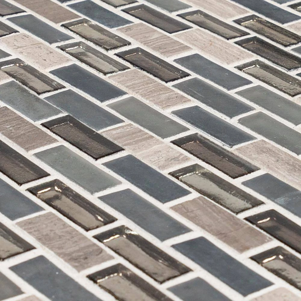 Create a dramatic look in your home with our Coal Mine 11-1/2 in. x 11-5/8 in. Glass and Stone mosaic. This mosaic uniquely combines grey limestone and glass pieces in a mini brick pattern. Works with classic and modern design styles. Combine with other mosaics and field tiles to create impressive installations. For best installation results, use white polymer-modified thinset.