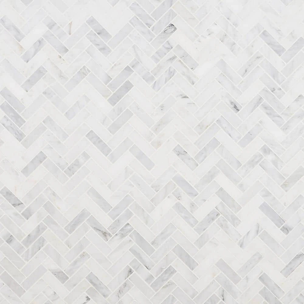 For backsplashes and other decorative uses, choose Ivy Hill Tile’s 12 in. x 12 in. Asian Statuary Herringbone 1 in. x 3 in. Marble Tile. It adds dimension and installs simply with mesh backing. And tiles can be separated to add to their design flexibility.
