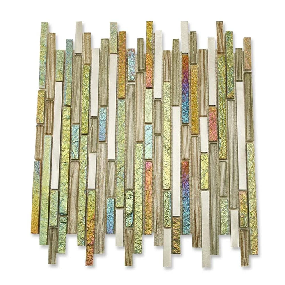 The Paradise Eden 12 in. x 12 in. x 8 mm Glass Mosaic Tile is a stunning combination of multicolored slate, frosted glass and etched copper deco gives any room a modern and contemporary ambiance. Add a pop to any room with these beautiful tiles that are versatile, unique and great to use for a kitchen backsplash or fireplace. Dare to be different with the Eden Tile from our Paradise Collection. The mesh backing not only simplifies installation, it also allows the tiles to be separated which adds to their design flexibility. Sample tile OMSID: 206154515.
