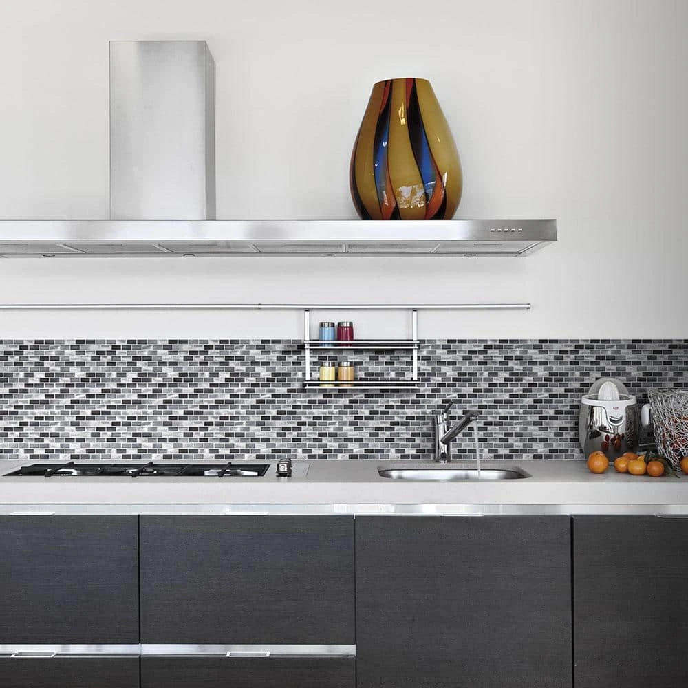 With its smooth, unglazed surface and its slight shade variation, the Jeffrey Court Stealth 12 in. x 12 in. Glass and Metal Mosaic Wall Tile can be installed alongside stone or ceramic field tiles (sold separately) to create a coordinated look. Mesh-mounted Mosaics can be used as a whole sheet or cut to make affordable feature strips. Penetrating sealers recommended before grouting. Recommend white “polymer-modified” thinset and non-sanded grout for best installation results.